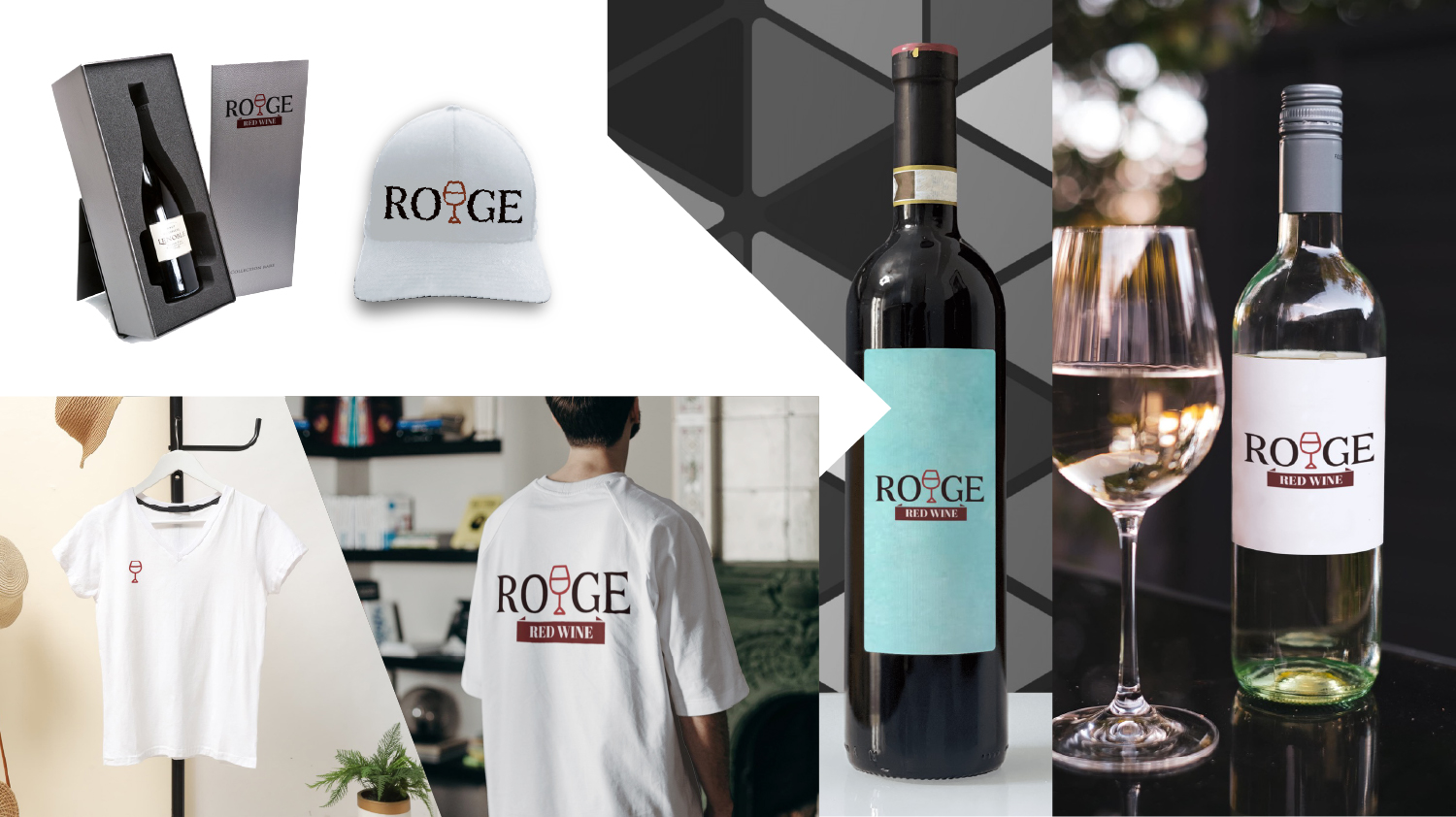 깊이 있는 버건디 포인트 컬러와 다크 브라운의 색상 대비, 하단의 안정적인 리본 모티브를 통해 정통성 있는 레드 와인의 고급스러운 분위기를 효과적으로 전달한다.